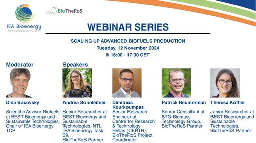 This webinar gives an overview on the status of demonstration plants and commercialization progress of advanced biofuels, introduces the BioTheRoS project and highlights two thermochemical conversion routes for the production of SAF or maritime fuels.